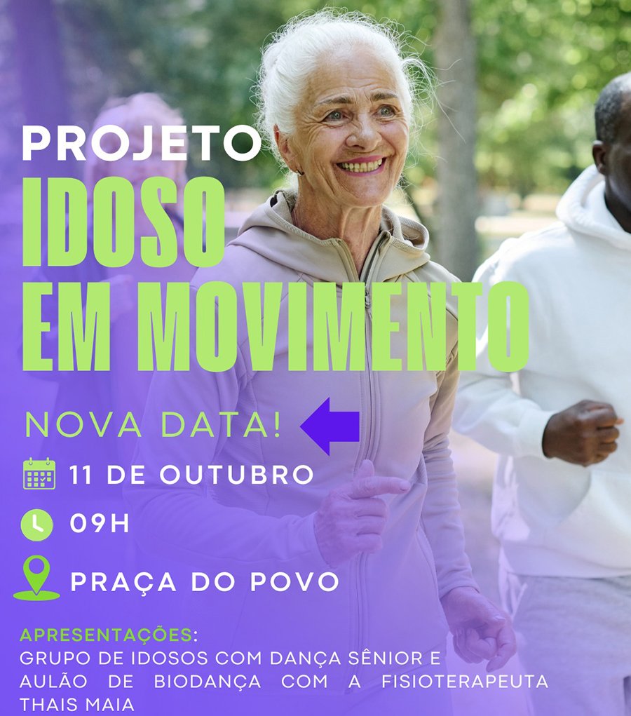 O Projeto Idoso em Movimento acontece das 9h às 11h30 e contará com apresentações especiais, atividades coletivas, Dança Sênior e Aulão de Biodança com a fisioterapeuta Thaís Maia. “Será uma manhã de muita energia positiva, com momentos de cuidado, alegria e confraternização. Um momento para valorizar a experiência, a vitalidade e a sabedoria de quem tem tanto a compartilhar”, afirmou a coordenadora da Equipe E-Multi e gerente da Unidade Básica de Saúde (UBS) do Cidade Nova, Anna Amélia Souza Soares.
