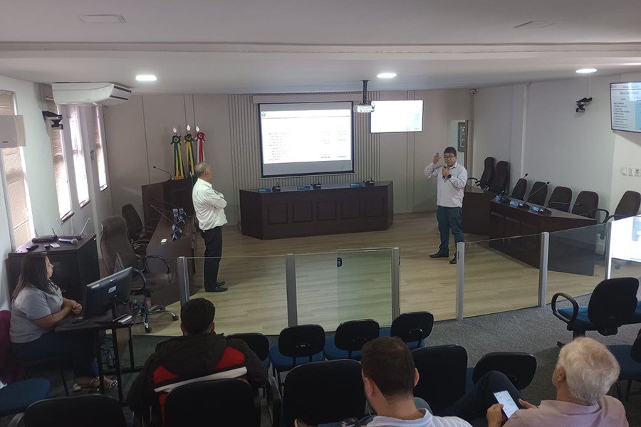 A apresentação foi feita pelo secretário de Planejamento do município, Eduardo José Quaresma e pelo secretário adjunto, Alisson Rodrigo Cruz Menezes.