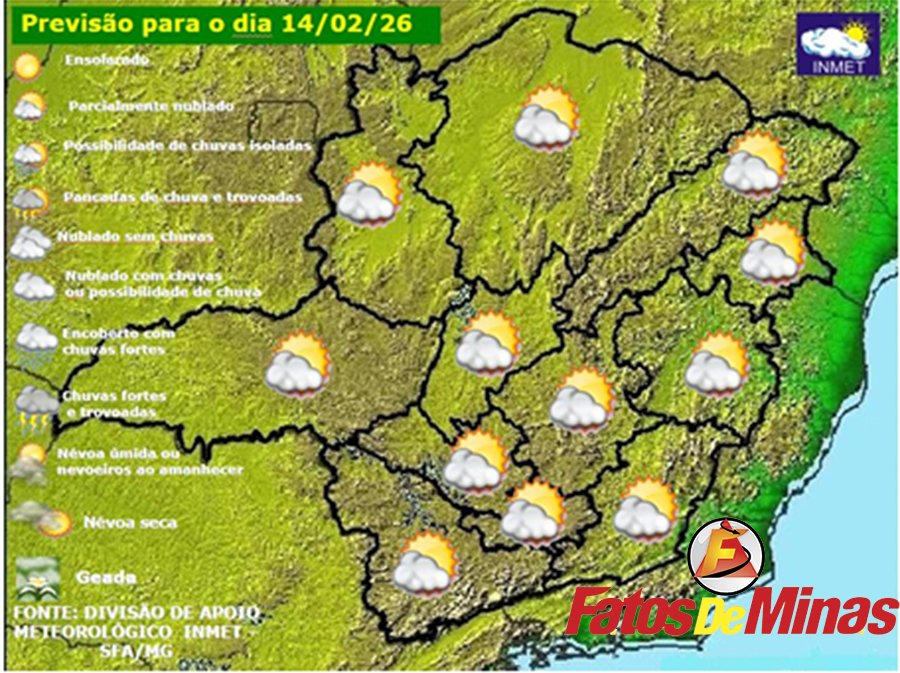 MINAS GERAIS – Carnaval com sol e temperaturas elevadas em Minas Gerais. Durante todo o feriado, o tempo permanecerá estável na maioria das regiões mineiras, com temperatura máxima da ordem ou acima de 30ºC. No domingo, há possibilidade de chuva isolada (rápida e passageira) para o sul de Minas, situação que se estende para a Zona da Mata na segunda feira (16). Já na terça-feira (17) de carnaval, áreas de instabilidades trazem de volta as típicas pancadas de verão para o este e sul do estado. Quarta-Feira (18) de Cinzas, as pancadas de verão se estendem para as demais regiões mineiras.