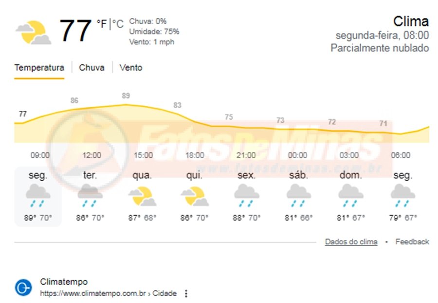 MINAS GERAIS – Segunda-feira, 18 de março de 2024, segue com temperaturas elevadas, porém com pancadas de chuva em parte de Minas Gerais. Embora a onda de calor permaneça atuando sobre o estado, o aumento de umidade em médios níveis da atmosfera favorece o desenvolvimento de áreas de instabilidade e a ocorrência de pancadas chuva, a partir da tarde, principalmente no oeste e sul mineiro. Contudo, não se pode descartar a possibilidade de chuva isolada também no noroeste e área central do estado. A partir de terça-feira, a tendência é de redução das temperaturas e retorno das chuvas em todo o estado.
