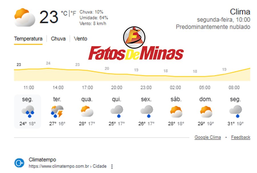 MINAS GERAIS – Segunda-feira, dia 24 de novembro de 2025, nublada e com chuva em Minas Gerais. A atuação de áreas de instabilidade mantém todo o estado com condições favoráveis para ocorrência de chuva, preferencialmente a partir da tarde. Os maiores volumes de chuva são esperados para o sul e Zona da Mata. A tendência é que estas instabilidades persistam, em todo o estado, até a terça feira, começando a melhorar no Sul e Oeste a partir de quarta-feira.