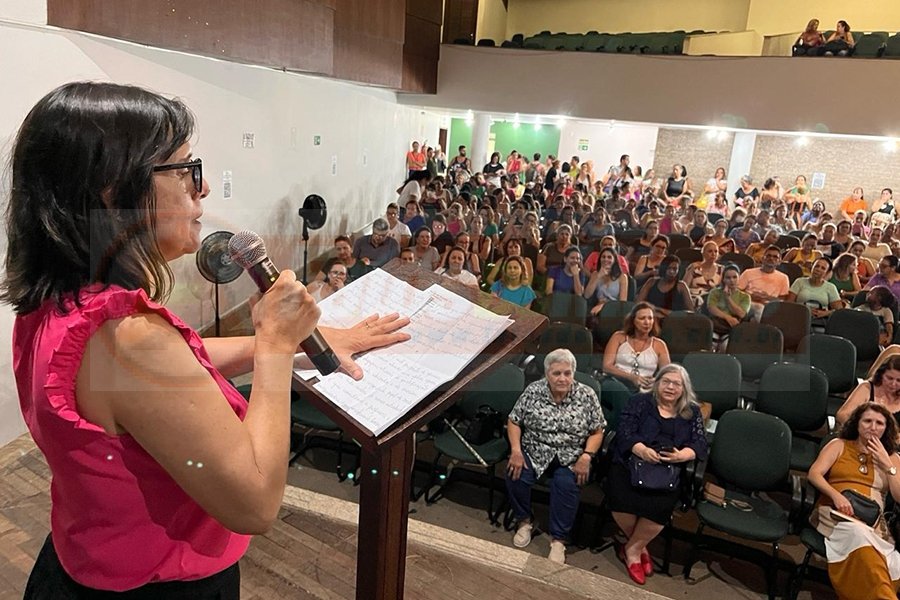 A secretária municipal de Educação, Maria do Sagrado Coração Rodrigues Santos, pontuou a relevância do tema do encontro, destacando que todos os alunos têm o direito fundamental de adquirir habilidades de leitura e escrita. Ela incentivou a busca por estratégias que assegurem esse direito. Maria também ressaltou a importância dos cursos de capacitação oferecidos pela administração municipal, afirmando que “para verdadeiramente transformar a vida dos 6.315 alunos da rede, incluindo-os por meio de mudanças de atitudes e ações para atender a todos sem deixar ninguém para trás, a administração tem investido em capacitação para todos os educadores.”