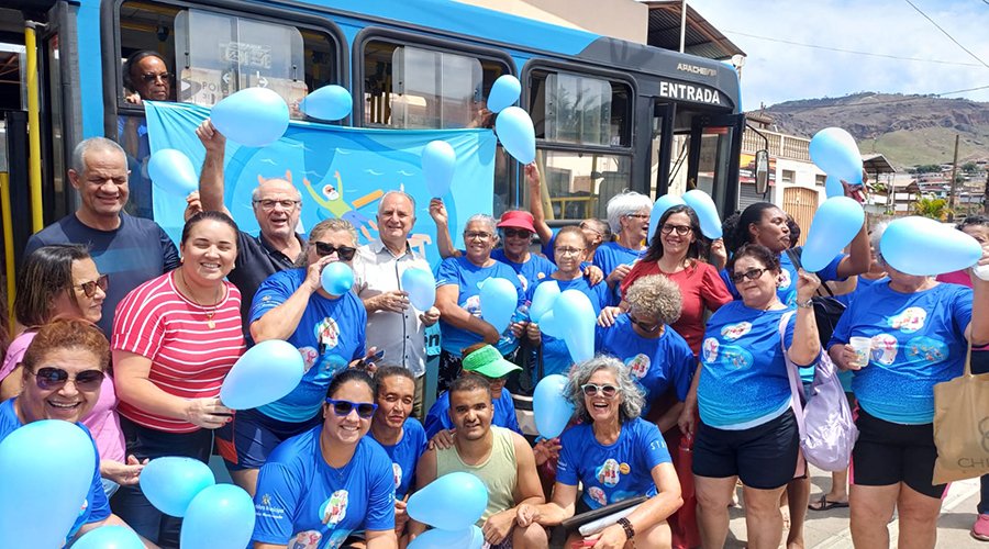 JOÃO MONLEVADE (MG) – A Prefeitura, por meio da Secretaria Municipal de Esporte e Lazer, iniciou recentemente o transporte gratuito para os participantes do programa Ácqua Senior, que oferece aulas de hidroginástica para idosos no Social Clube. O prefeito Dr. Laércio Ribeiro (PT) acompanhou de perto o serviço, ao visitar o Centro de Convivência Espaço Bem Viver, ponto de encontro para embarque dos alunos.