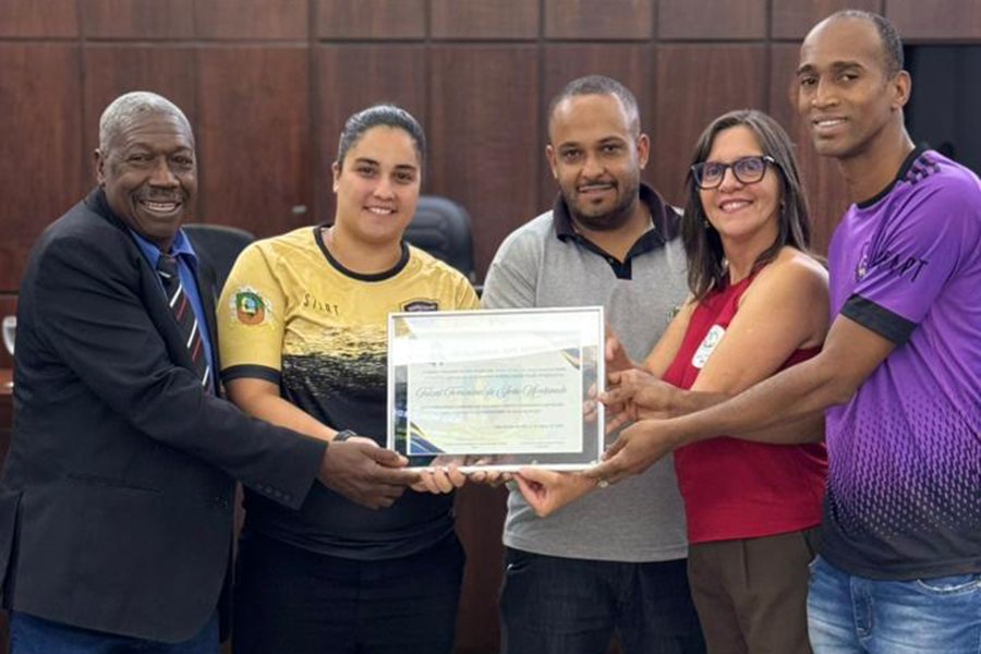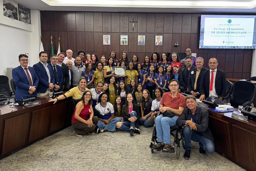 JOÃO MONLEVADE (MG) – Em uma noite de reconhecimento, a Câmara Municipal entregou nessa quarta-feira, 11, Moção de Aplausos ao Futsal Feminino da cidade. A homenagem foi proposta pela vereadora Maria do Sagrado (PT), em reconhecimento ao trabalho desenvolvido pelas atletas, treinadores e equipes que vêm contribuindo para o fortalecimento da modalidade no município.