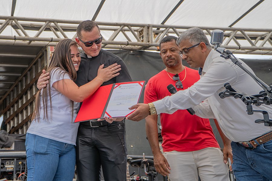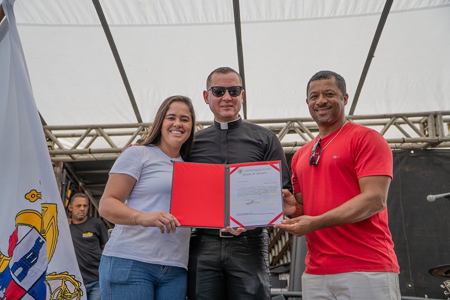 ITABIRA (MG) – O padre Ueliton Neves da Silva foi homenageado pela Câmara Municipal de Itabira com uma moção de aplauso. A entrega da honraria aconteceu no domingo, dia 1º de junho de 2025, durante a tradicional Festa do Caminhoneiro, na avenida Mauro Ribeiro, ao lado do Santuário São Geraldo Majela, no bairro Major Lage de Baixo.