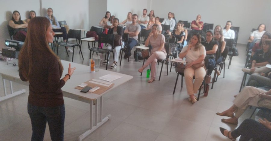 A capacitação contou com a presença da secretária municipal de Saúde, Raquel Paiva Drumond e da secretária-adjunta da pasta, Simone Borba.