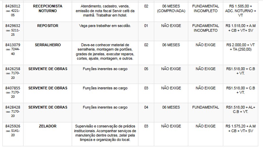 Os interessados nas vagas devem comparecer munidos de DOCUMENTOS e CTPS no SINE – Itabira, av. das Rosas, 410, bairro São Pedro. Telefone: (31) 3839-2141/ 3839-2502/ 3839-2527/ 3831-5188/ 3839-2861/ 3839-2152/ 3839-2138.