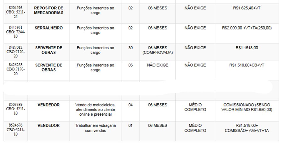 Os interessados nas vagas devem comparecer munidos de DOCUMENTOS e CTPS no SINE – Itabira, av. das Rosas, 410, bairro São Pedro. Telefones: (31) 3839-2140/ 3839-2502/ 3839-2527/ 3839-2861/ 3839-2146.