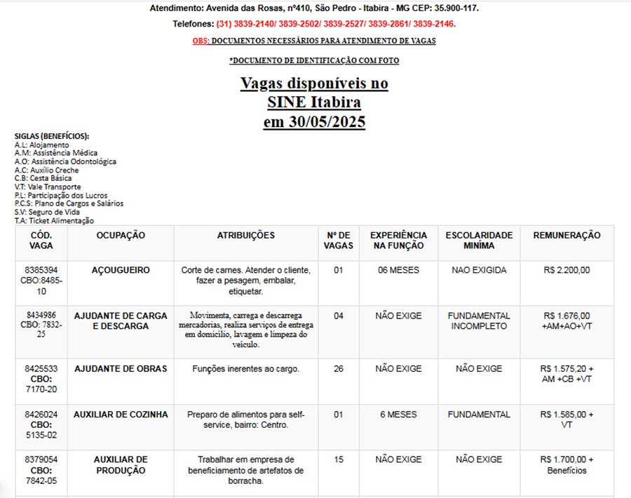 <img class="aligncenter size-full wp-image-84963" src="https://fatosdeminas.com.br/wp-content/uploads/2025/05/vaga-sin-30-maio.jpg" alt="" width="900" height="710" /> <img class="aligncenter size-full wp-image-84964" src="https://fatosdeminas.com.br/wp-content/uploads/2025/05/vaga-sin-30-maio1.jpg" alt="" width="900" height="743" /> <img class="aligncenter size-full wp-image-84965" src="https://fatosdeminas.com.br/wp-content/uploads/2025/05/vaga-sin-30-maio2.jpg" alt="" width="900" height="737" /> <img class="aligncenter size-full wp-image-84966" src="https://fatosdeminas.com.br/wp-content/uploads/2025/05/vaga-sin-30-maio3.jpg" alt="" width="900" height="184" />