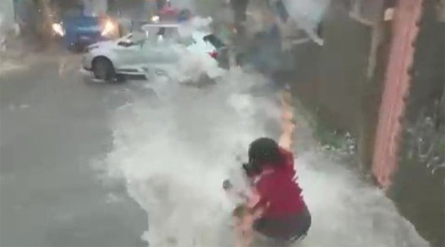 Uma mulher foi arrastada pela força da água da chuva no bairro Alto Vera Cruz, região Leste de Belo Horizonte, na tarde de quinta-feira (30). Um vídeo gravado registrou o momento em que ela cai ao chão e é levada pela enxurrada. Ela só consegue se levantar quando se apoia em um… pic.twitter.com/3Aqgx5FXCk