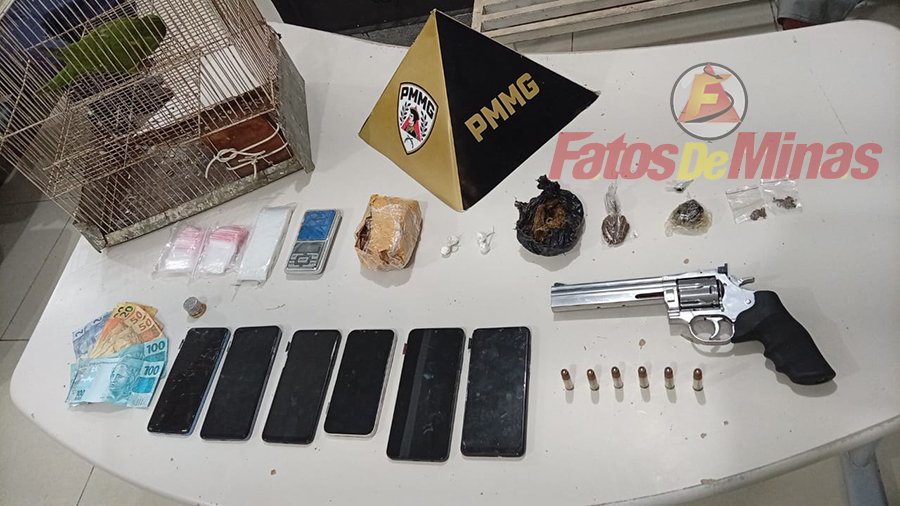 ITABIRA (MG) – Quatro pessoas foram presas em flagrante por tráfico de drogas após operação da Polícia Militar que apreendeu entorpecentes, dinheiro, celulares e até um simulacro de arma de fogo em uma residência usada como ponto de venda.