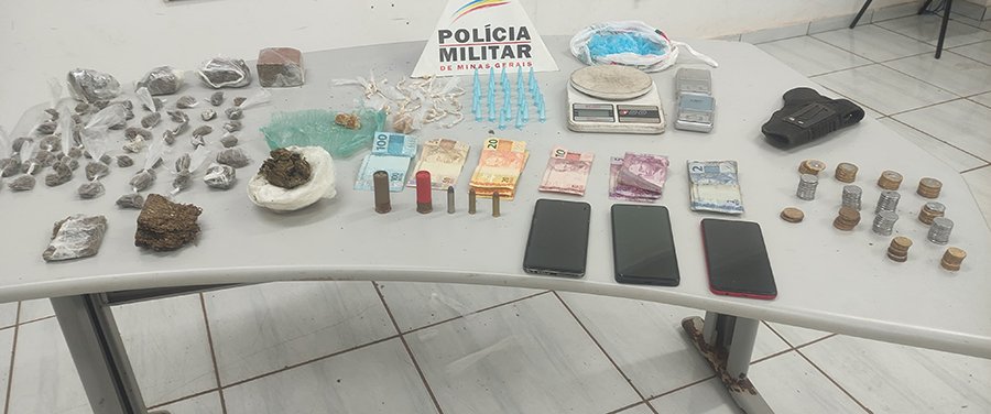 Durante a operação, foram localizadas grandes quantidades de entorpecentes, munições e outros materiais ligados ao tráfico. Ao todo, os militares apreenderam 54 buchas e sete porções de maconha, 80 pedras e duas porções de crack, além de 32 pinos de cocaína. Também foram encontrados R$ 357,50 em dinheiro, três balanças de precisão, três celulares, uma sacola com pinos vazios e cinco cartuchos de munição — sendo dois de calibre 38, um de calibre .357 Magnum e dois de calibre 12.