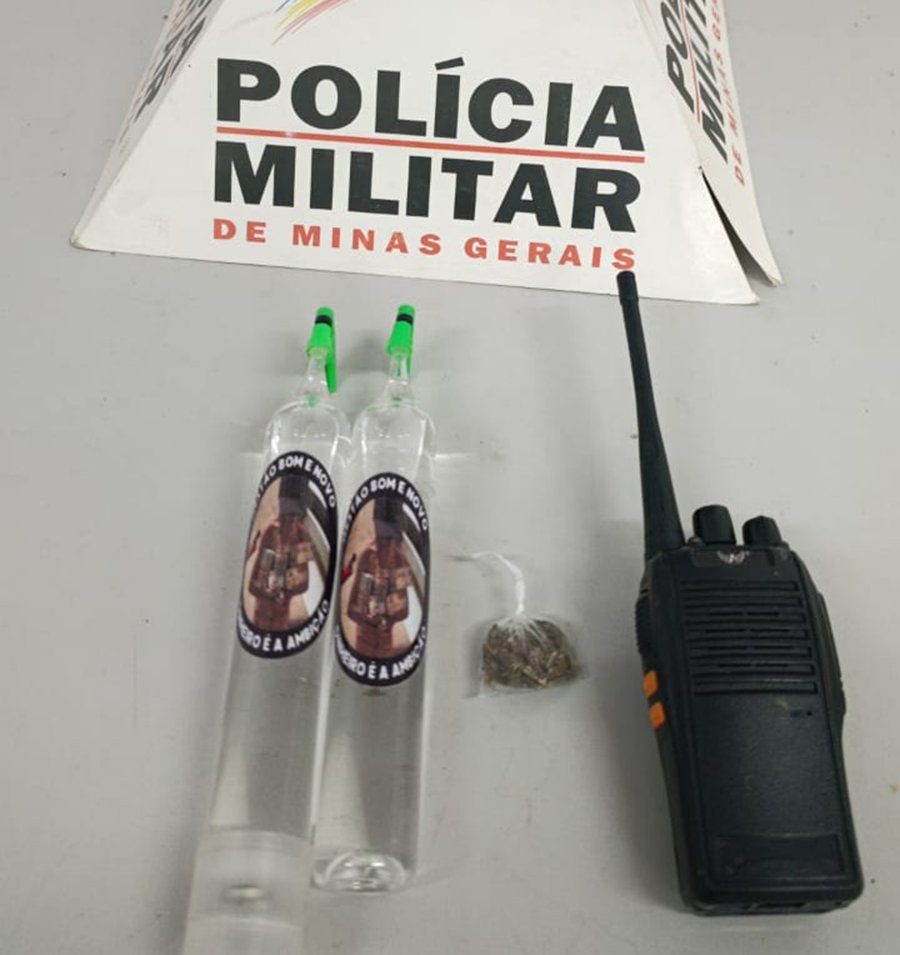 ITABIRA (MG) – Frascos de lança-perfume, maconha e um rádio comunicador foram apreendidos pela Polícia Militar, no quarto de um adolescente de 15 anos, no bairro Fênix, em Itabira, na noite de sábado, dia 24 de maio de 2025. O suspeito conseguiu fugir e ainda não foi localizado.