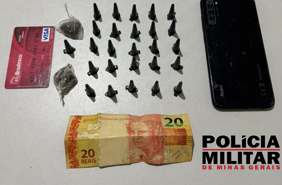 Os militares suspeitaram da atitude do rapaz, que, ao notar a aproximação da viatura, tentou se livrar de um objeto arremessando-o em um terreno próximo. Após buscas no local, os policiais localizaram 26 pinos de cocaína, duas buchas de maconha e uma quantia em dinheiro.
