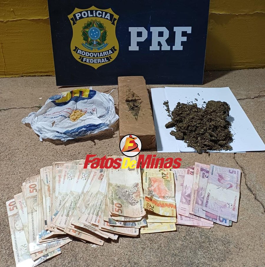 Durante a vistoria, os agentes localizaram uma barra de maconha, uma porção menor da mesma substância, sementes aparentando ser da mesma espécie e cerca de 25 pedras de crack. Na bolsa do condutor, foram encontrados R$ 3.462 em dinheiro. Segundo a PRF, os ocupantes não apresentaram justificativa plausível para a origem da quantia nem para a posse das drogas.