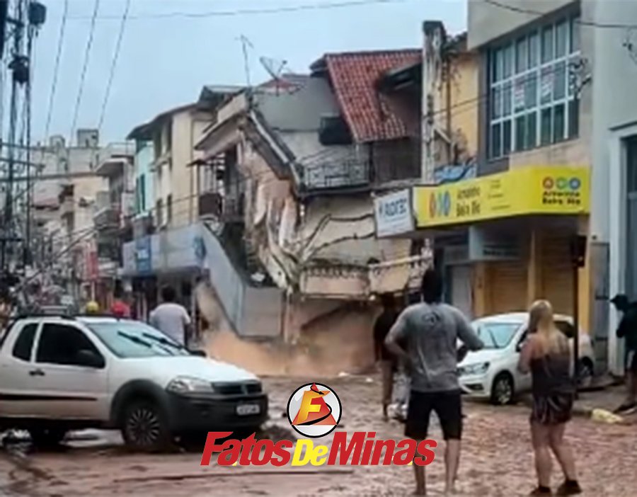 Imagens enviadas à redação do Fatos de Minas mostram o desabamento de uma casa durante o avanço da água. A situação na cidade se agravou rapidamente: em poucas horas foram registrados 170 milímetros de chuva, enquanto o nível do Rio Ubá chegou a 7,82 metros.