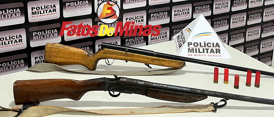 Durante as diligências, foram apreendidas duas espingardas sem numeração ou identificação de fabricante, além de cinco cartuchos calibre 12, sendo quatro deflagrados.